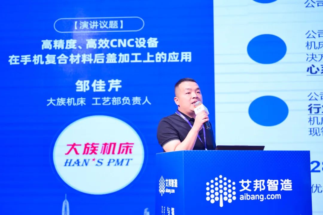 大族機(jī)床工藝負(fù)責(zé)人鄒佳芹帶來主題為“高精度、高效CNC設(shè)備在手機(jī)復(fù)合材料后蓋加工上的應(yīng)用”的精彩演講,針對大族機(jī)床在3C領(lǐng)域的數(shù)控加工應(yīng)用,就行業(yè)專用機(jī)型、柔性方案設(shè)計和自動化應(yīng)用等一一作系統(tǒng)介紹,并重點講解分析了大族機(jī)床在鈦合金等3C行業(yè)新型材料上的工藝研究和最新成果。