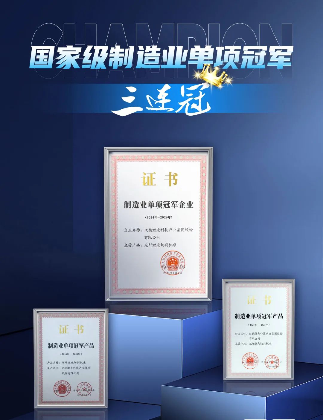 同時,上半年公司在技術創新、品牌實力等方面也獲得了多項榮譽:又一次榮獲國家級“制造業單項冠軍企業”認定,這是公司連續三屆榮獲此殊榮;G12030F光纖激光切割機、MPS-0806H精密光纖激光切割機榮獲2024年度MM AWARD創新產品獎;GRC四頭卷料激光切割生產線榮獲2024榮格技術創新獎;公司在“紅光獎”第七屆中國激光行業創新貢獻獎評選活動中榮獲激光行業影響力企業獎。