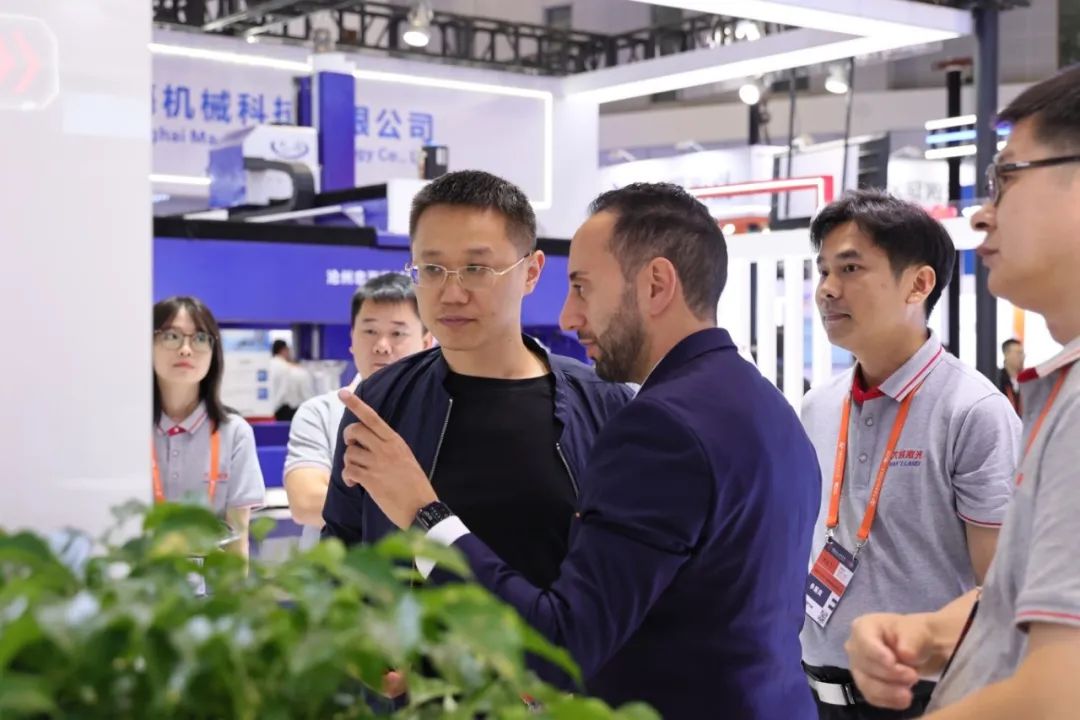 業務人員通過現場熱情交談與產品演示,詳細介紹了產品特點和應用案例,客戶們對大族激光產品的卓越品質與前沿技術表示高度的認可。在展現新質生產力的同時,積極拓展國際市場,期間接待了不少海外客戶,有望拓展深化合作領域。