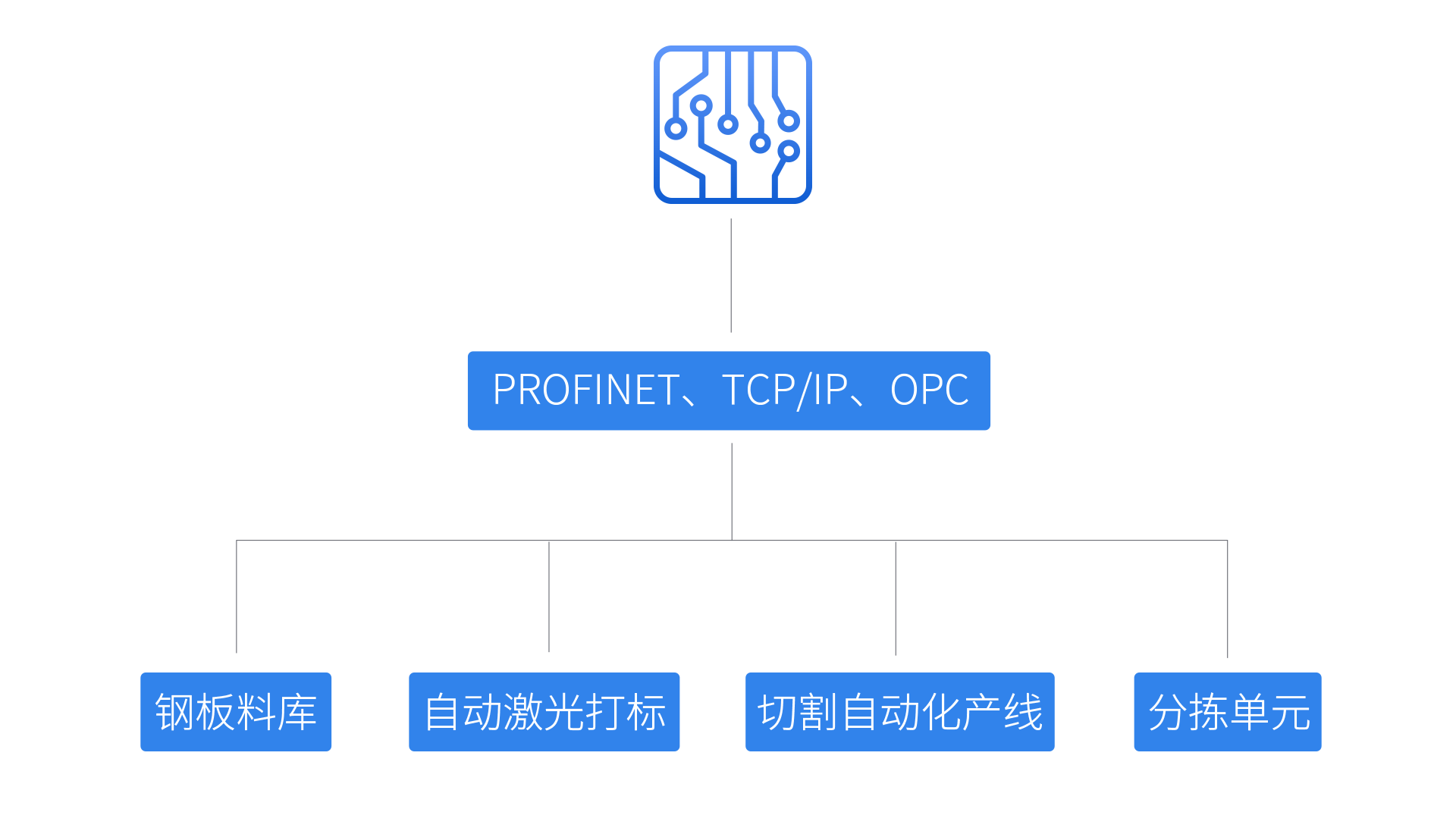 產品特點 1、實現從生產排程、排版編程到原材料存儲、原材料上料、切割、切割后工件及廢料的轉運,實現自動化和按計劃加工;